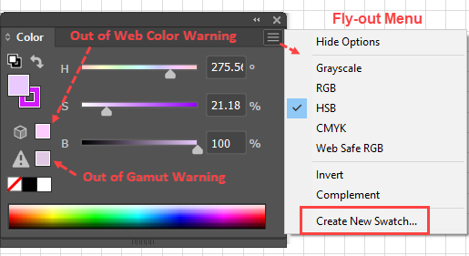 Note that the human eye works by comparing the output of 3 types of receptors that have their peak output very approximately at three primary colors. Illustrator supports three color models RGB, CMYK, and HSB. |