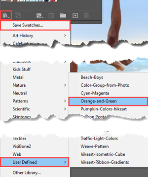 A term used in the printing industry to describe a color that is mixed on the press and often specified in an industry standard formula guide library. These libraries (e.g., PANTONE Solid Coated) specify appropriate ink formulas for particular types of paper. To find these in the Swatches panel, you click the Swatch Libraries menu icon and then on the popup menu select Color Books. Illustrator represents a spot color swatch with the same (small white triangle in the lower right corner) as it does for a Global color, but it puts a dot in the triangle. |