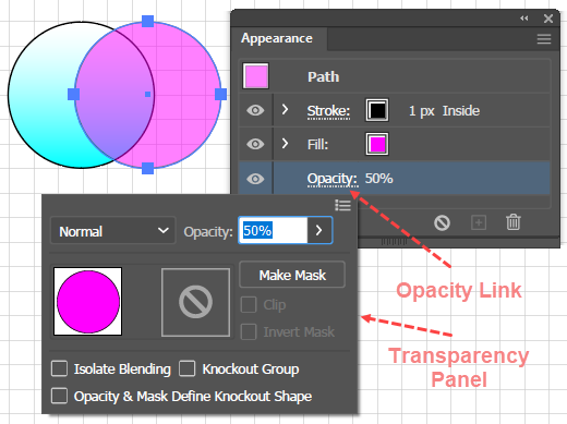 Creating Opacity Masks. When creating these masks, you will probably want to launch the Window > Transparency panel on its own (rather than via the Appearance panel) so that the panel remains open and available.