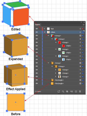 Not all Live Effects are applicable to all types of objects, but you can apply some Effects to a variety of objects: layers, groups, paths, and within a particular path to its individual fills, or strokes. In addition, there are many kinds of Live Effects, which vary greatly in complexity, but applying an effect is similar for all of them.