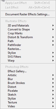 - Open the Effect menu and choose one of the Illustrator Effects. Ai will open a dialog box.